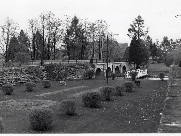 The image presents a historical perspective of the original Erie Canal, which once meandered through North Main Street. The vantage point of the photograph is from a bridge that formerly existed slightly to your right. This bridge, like many others of its time, was designed to allow boats to navigate beneath it, facilitating seamless travel along the canal. However, with the closure of the Canal in 1918, significant changes were made to the landscape. The underside of the bridge was filled, paving the way for the construction of a conventional road. This transformation marked the end of an era and the beginning of a new chapter in the region’s history. Today, the view captured in the photograph has dramatically changed. Where once waterways and boats dominated the scene, now blooms a vibrant flower park. This park stands where the old canal once flowed. It serves as a reminder of the area’s rich history, while also showcasing its ability to adapt and evolve over time. It’s a perfect blend of past and present, nature and culture, serving as a bridge between the bygone era of the Erie Canal and the present-day community.